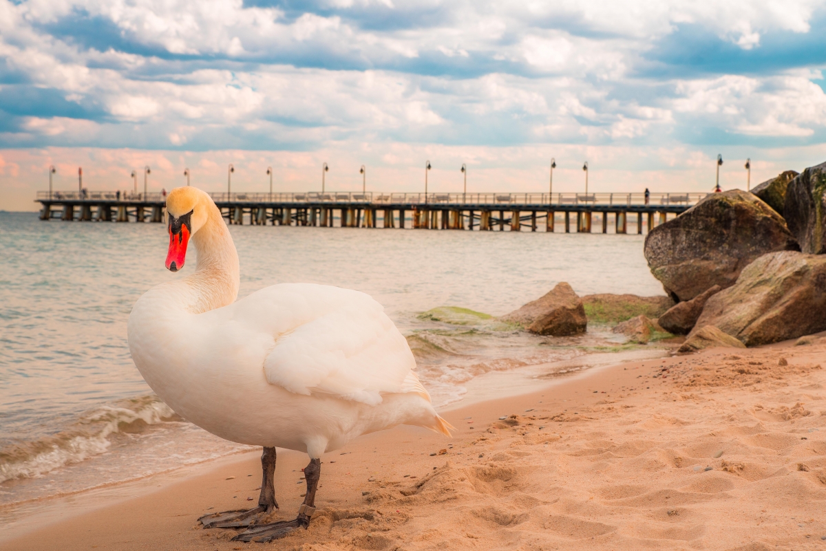 testowe Ciekawski łabędź Łabędź przechadzający się po plaży w Gdynia Orłowo Parametry techniczne: Aparat: NIKON CORPORATION; Model: NIKON D750; Przysłona: f/7,1; Czas ekspozycji: 1/125 s; ISO: 100; Ogniskowa: 50 mm; © fot. Michał Pietrzak data dodania: 10-10-2021