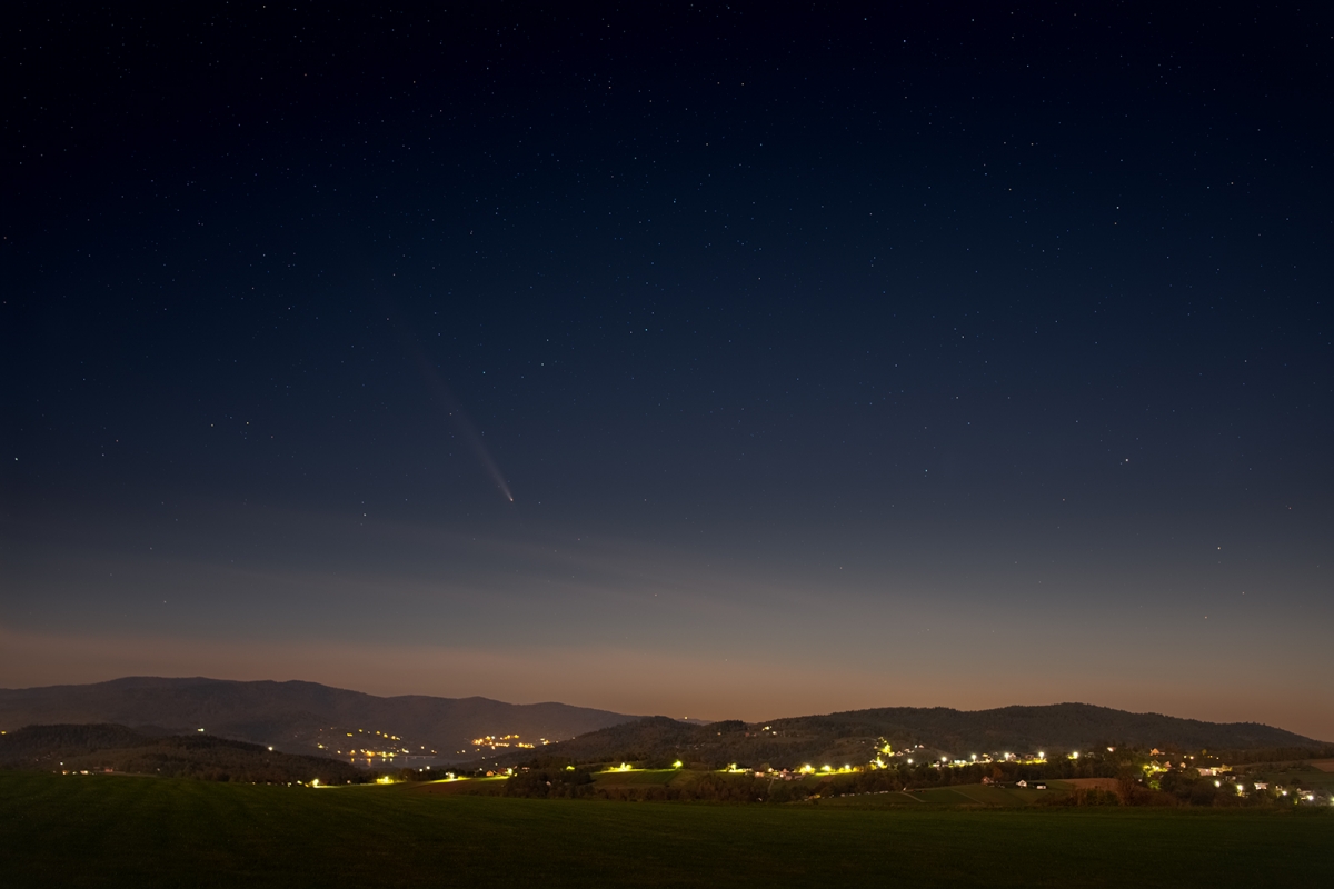 testowe Kosmiczny Wędrowiec Kometa C/2023 A3 (Tsuchinshan-ATLAS) Parametry techniczne: Canon EOS 6D mod +Tamron 35/1,8 SP, Beskid Mały Polska, październik 2024. © fot. Michał Kasperczyk data dodania: 17-10-2024