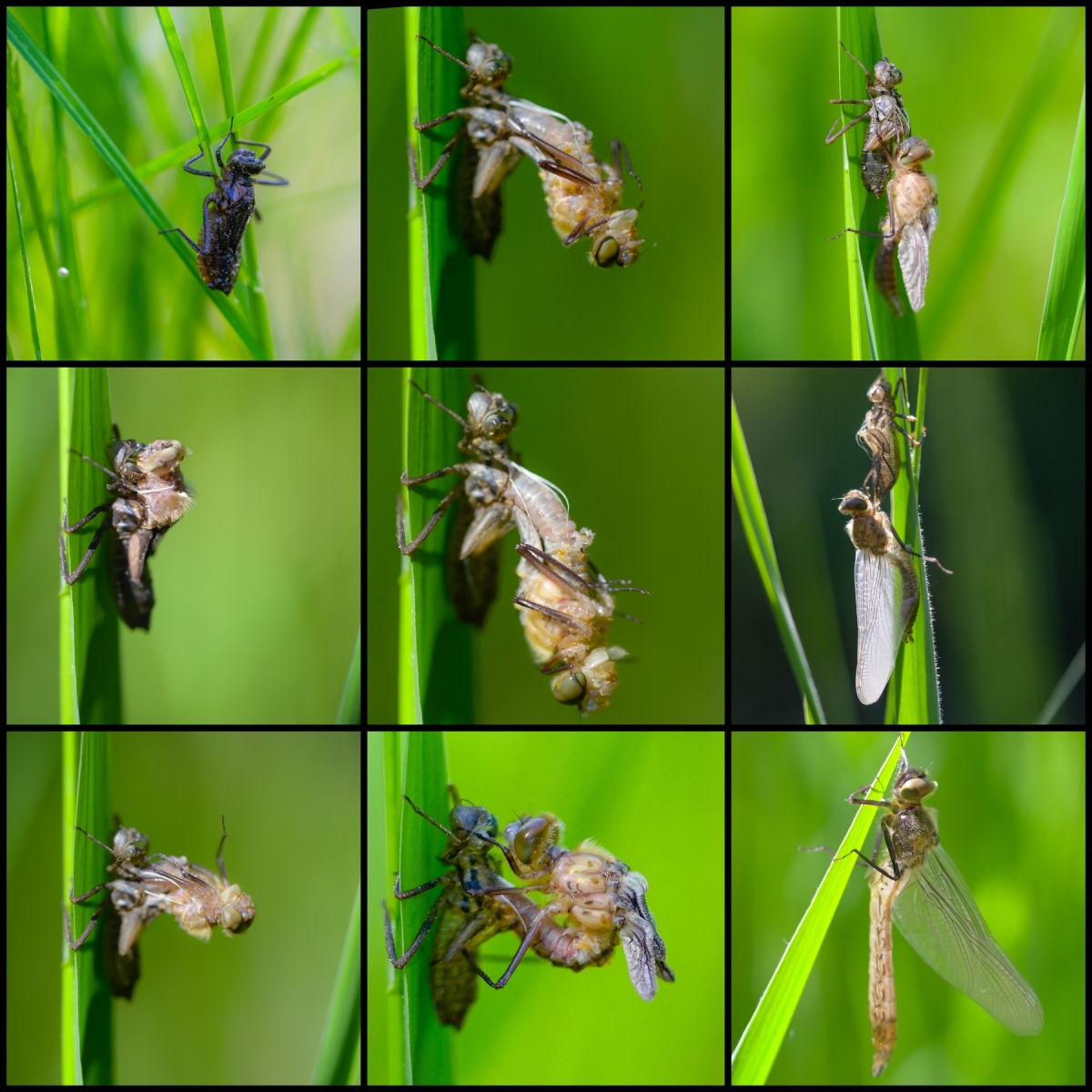 Godzinna foto obserwacja przeobrażenia ważki.