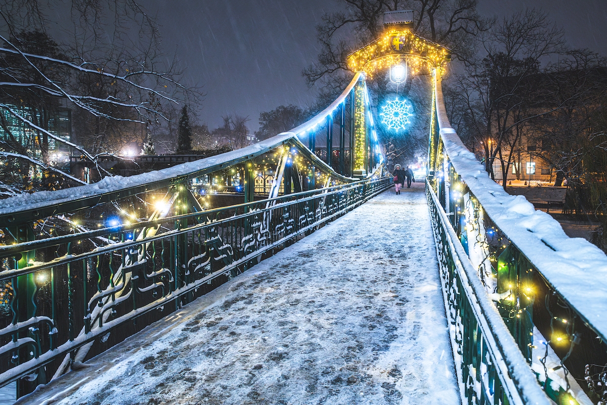 testowe pada śnieg, pada śnieg... Most Groszowy w Opolu już przystrojony na Święta Parametry techniczne: Aparat: RICOH IMAGING COMPANY, LTD.; Model: PENTAX K-1; Przysłona: f/5,6; Czas ekspozycji: 1/15 s; ISO: 1600; Ogniskowa: 24 mm; © fot. Henryk Niestrój data dodania: 28-11-2023