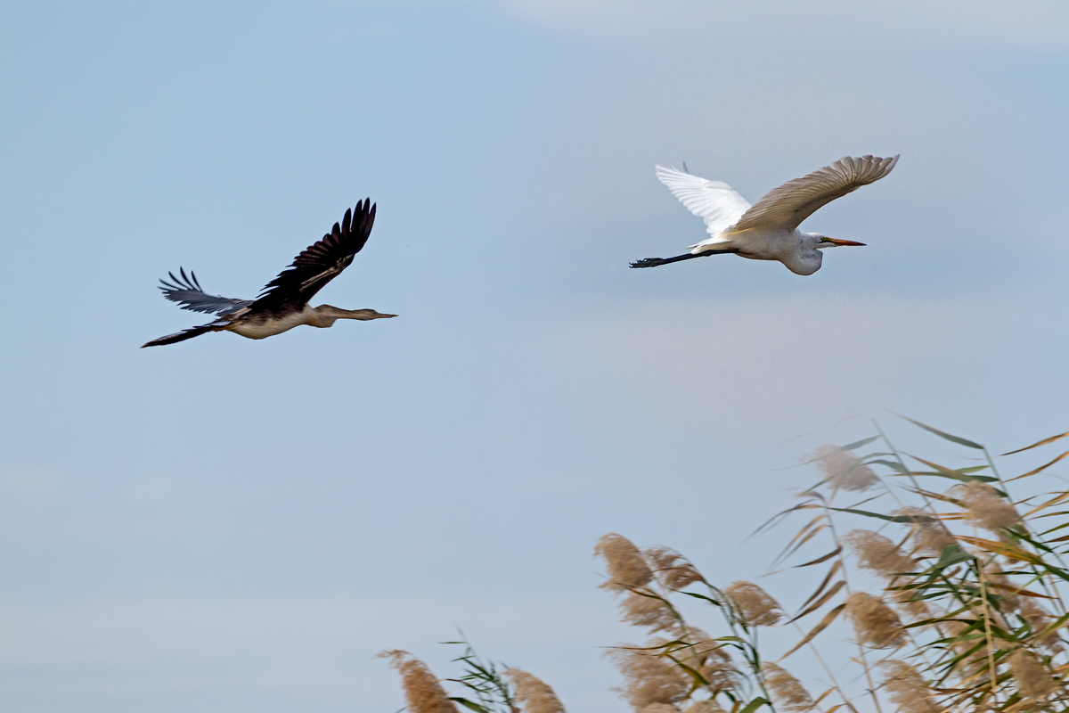testowe Wspólny lot... Czapla biała i Wężówka afrykańska w Parku Narodowym Oiseaux du Djoudj. Parametry techniczne: Canon © fot. Joanna Zbróg data dodania: 13-09-2023