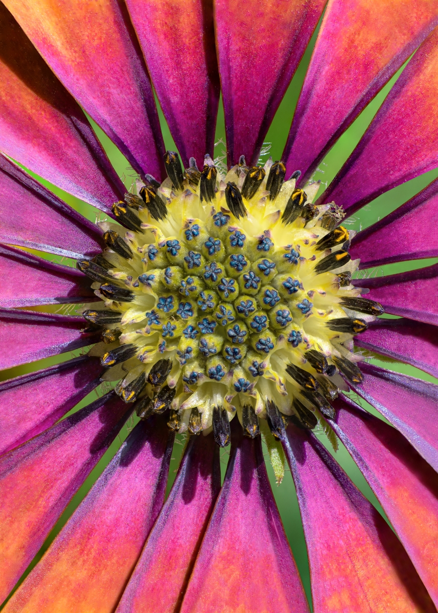 testowe Mandala Stokrotka afrykańska (Osteospermum/African daisy), odmiana Erato "Purple glow", środek kwiatu Parametry techniczne: TOKINA AT-X PRO D MACRO 100M F/2.8 + Raynox DCR-250, stos obrazów 86 zdjęć Aparat: NIKON CORPORATION; Model: NIKON D7500; Przysłona: f/11; Czas ekspozycji: 1/320 s; ISO: 160; Ogniskowa: 100 mm; © fot. Kamil Górawski data dodania: 25-06-2024
