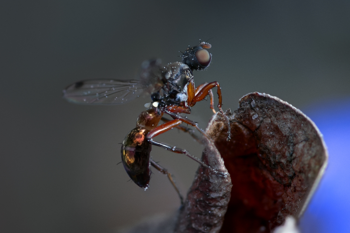 testowe Wońka Muchówka (Diptera) z rodziny Wońkowatych (Sepsidae) jaką jest Wońka skrzydłoplamka (Sepsis punctum), niezbyt szybka ale tzw. ciągle w ruchu, ciężko było ją złapać serią ale ten jeden strzał wyszedł "ok", gabaryty okazu mieszczą się w 3-6mm Parametry techniczne: TOKINA AT-X PRO D Macro 100M F/2.8 Aparat: NIKON CORPORATION; Model: NIKON D7500; Przysłona: f/11,0; Czas ekspozycji: 1/400 s; ISO: 800; Ogniskowa: 100 mm; © fot. Kamil Górawski data dodania: 12-08-2024