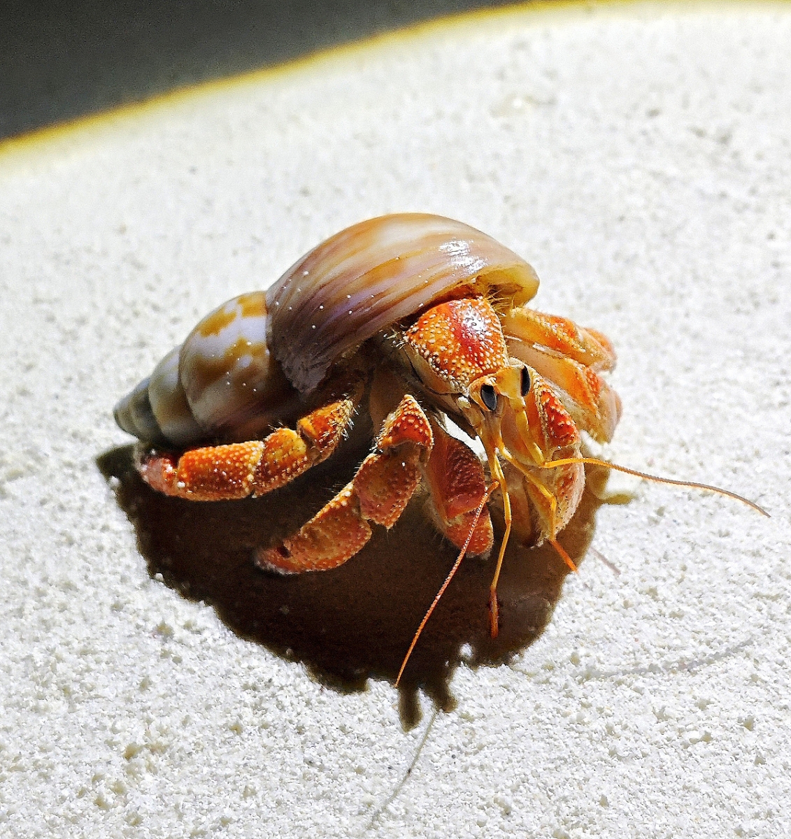 Krab pustelnik czerwony Ten krab nie jest taki szybki, bo dźwiga swój dom na plecach. Mając aparat, latarkę i - co najważniejsze - asystentkę od oświetlenia, można mu zrobić taką fotkę pamiątkową. Parametry techniczne: Aparat: Xiaomi; Model: 23127PN0CG; Przysłona: f/1,6; Czas ekspozycji: 1/100 s; ISO: 100; Ogniskowa: 6.6 mm; © fot. MAREK SAS data dodania: 04-03-2025