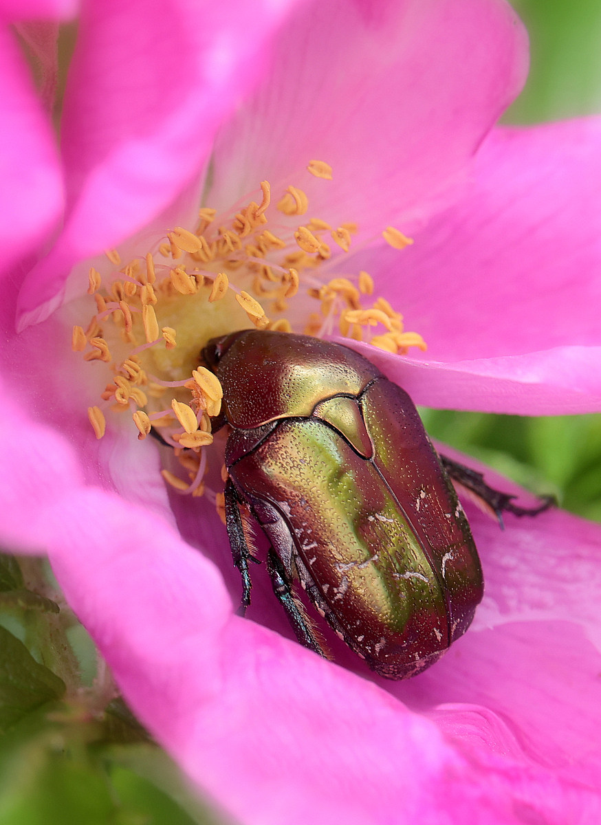 Intensywna barwa i słodki zapach kwiatów róży pomarszczonej przyciągają nie tylko pszczółki.