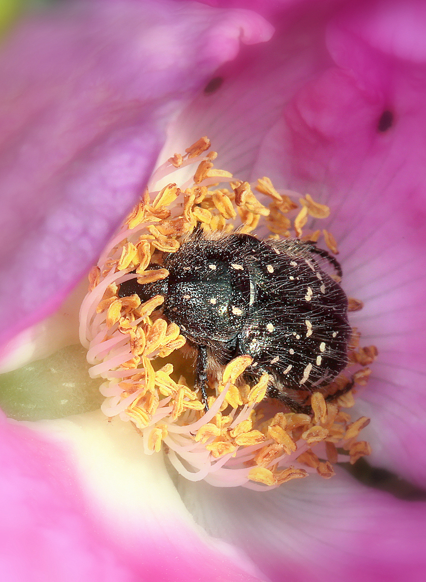 Intensywna barwa i słodki zapach kwiatów róży pomarszczonej przyciągają nie tylko pszczółki, ale również innych zawodników, z różnych kategorii wagowych.