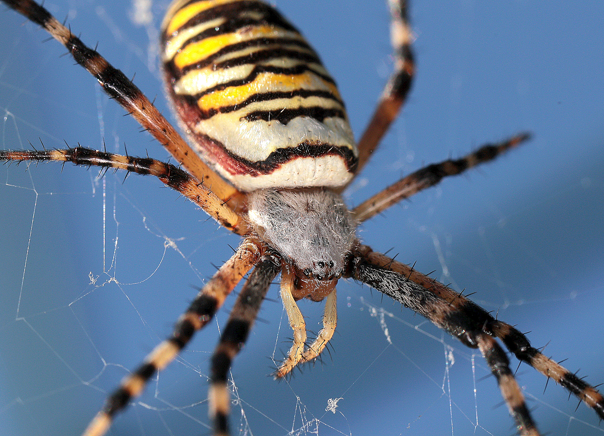 testowe Pająk tygrzyk Ciekawski tygrzyk paskowany podsunął się tak blisko obiektywu, że aż nie zmieścił się cały w kadrze! Parametry techniczne: Aparat: Canon; Model: Canon EOS R6; Przysłona: f/11,0; Czas ekspozycji: 1/200 s; ISO: 200; Ogniskowa: 100 mm; © fot. MAREK SAS data dodania: 27-11-2025