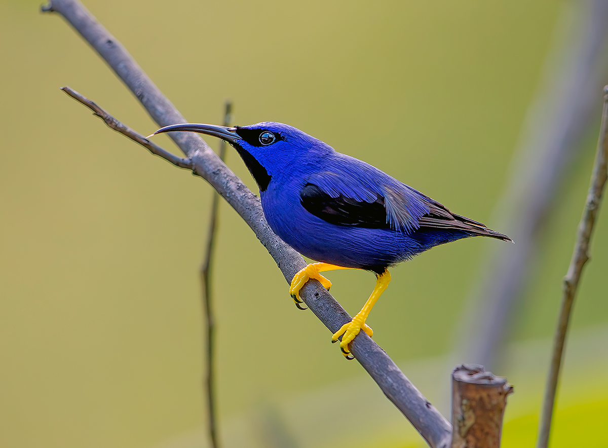 Błękitniczek lśniący. Trynidad. Jedyny, jak na moją wiedzę, ptak w żółtych skarpetkach.