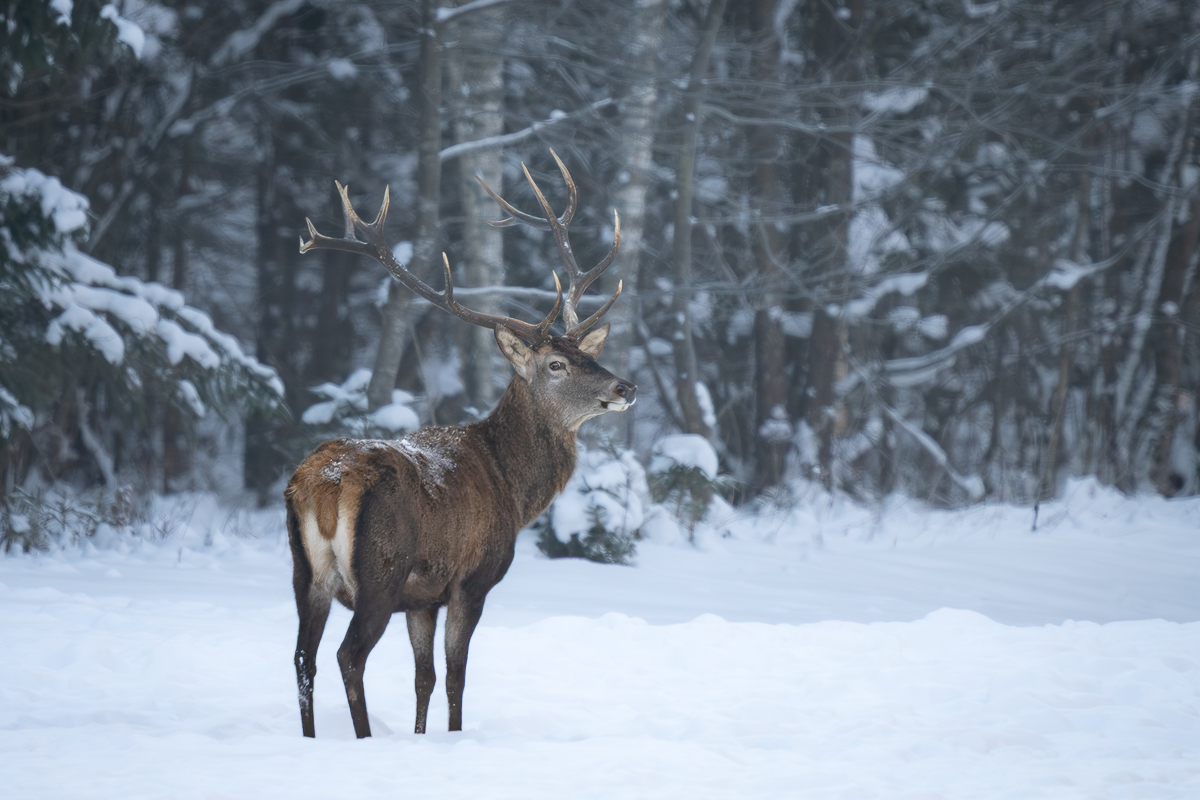 testowe Jeleń Puszcza Białowieska Parametry techniczne: Aparat: SONY; Model: ILCE-7M3; Przysłona: f/6,3; Czas ekspozycji: 1/1000 s; ISO: 1600; Ogniskowa: 588 mm; © fot. Marcin Monart data dodania: 19-01-2026