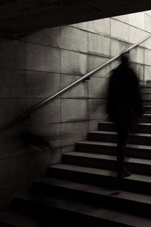 testowe shadow stairs Zdjęcie czarno białe zrobione na długim czasie naświetlania aby rozmazać przechodzących ludzi. Ma ono wprowadzić widza w zastanowienie. Parametry techniczne: Przestrzeń kolorów: sRGB Program ekspozycji: Ręcznie Czas ekspozycji: 1/4 Wartość przysłony: 14 Ogniskowa: 50 Czułość fotograficzna (ISO): 50 Model obiektywu: FE 50mm F1.8 Aparat: SONY; Model: ILCE-7M4; Przysłona: f/14,0; Czas ekspozycji: 1/4 s; ISO: 50; Ogniskowa: 50 mm; © fot. Igor Baścik data dodania: 14-05-2025