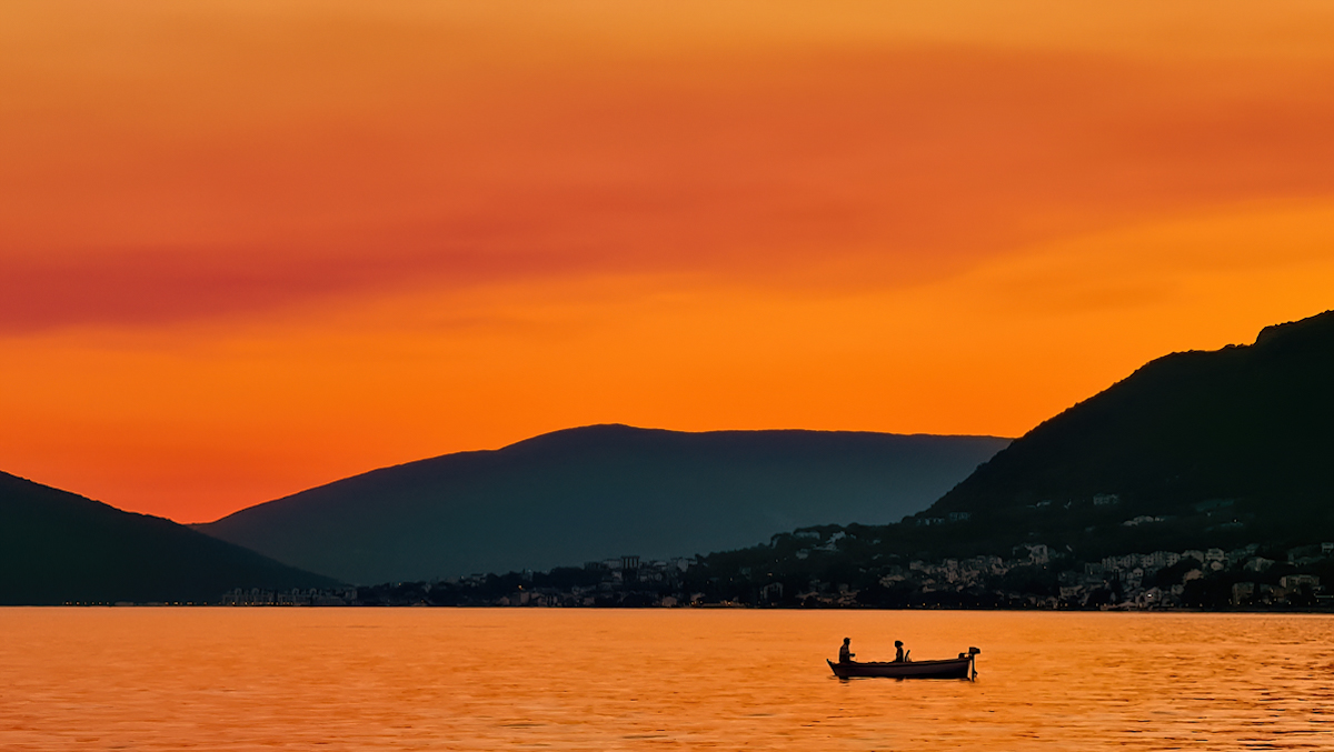 Zachód słońca w zatoce Kotorskiej