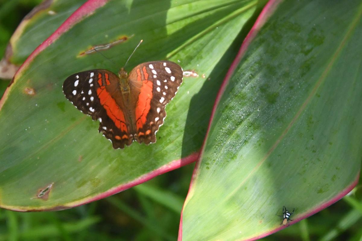 testowe Motyl i pajączek Zdjęcie wykonane w delcie Orinoko. Dopiero gdy w domu przeglądałem zdjęcia na komputerze dostrzegłem na dole liścia małego kolorowego pajączka. Parametry techniczne: Nikon d500 +tamron 18-400 © fot. Paweł Pawlak data dodania: 03-01-2026