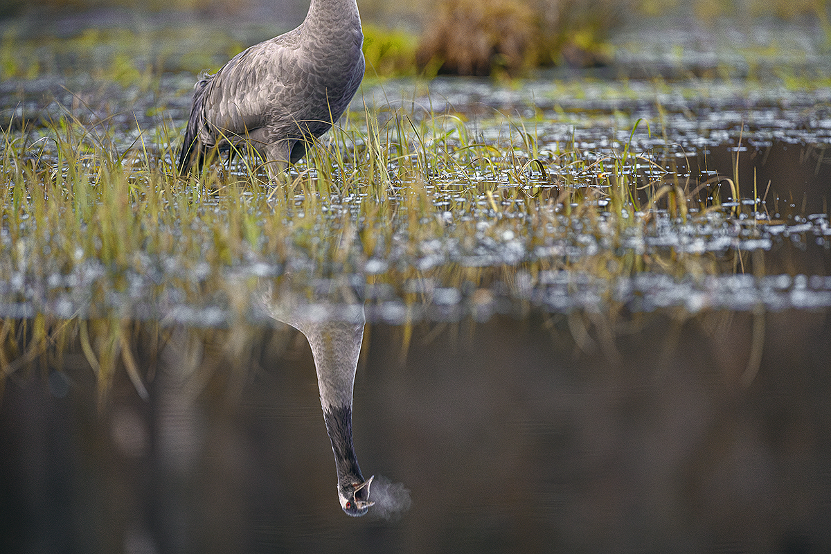 testowe Głowa do góry Tego mroźnego marcowego popołudnia byłem doskonale zakamuflowany, skoro żuraw podszedł do mnie na tyle blisko, że nie byłem, w stanie go w całości zamknąć w kadrze. Dodatkowo miałem spore obawy, że ruch obiektywem w górę zostanie dostrzeżony i ptak się niechybnie spłoszy, więc po krótkiej refleksji zdecydowałem się na taki dziwaczny kadr, gdzie pozostało mi tylko nacisnąć spust bezgłośnej migawki… Przypuszczam, że niezależnie czy ta kompozycja przypadnie do gustu, to była generalnie trafna decyzja, bo mogłem z przyjemnością obserwować tego żurawia spokojnie żerującego, aż do samego zmroku… Parametry techniczne: Canon EOS R5 + EF600mm f/4L IS III USM ISO: 2000; f/4.5; 1/640 sec Aparat: Canon; Model: Canon EOS R5; Przysłona: f/4,5; Czas ekspozycji: 1/640 s; ISO: 2000; Ogniskowa: 600 mm; © fot. Paweł Smolik data dodania: 03-01-2026