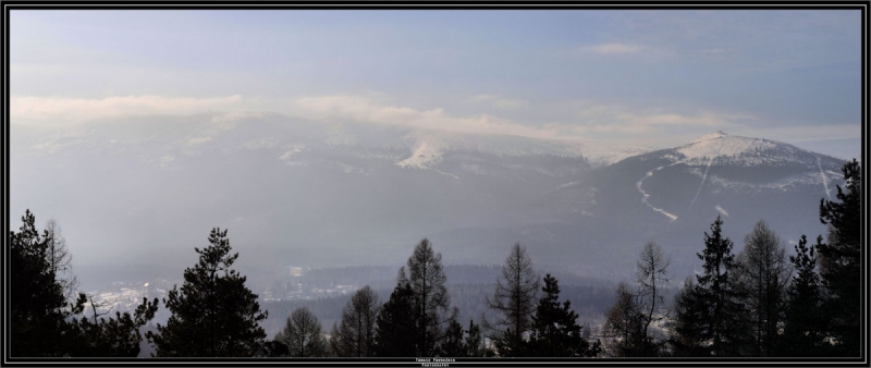 testowe Zimowe Karkonosze Panorama Karkonoszy z Zakrętu śmierci. Szklarska Poręba 2011 © fot. Tomasz Powroźnikdata dodania: 03-03-2011