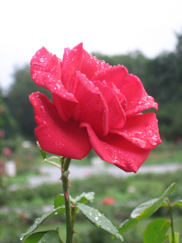 W tym konkretnie przypadku lepiej było by skadrować tak żeby nie było widać nieba. Jego zachmurzenie spowodowało ładne rozproszone światło dla róży ale sam jego wygląd jest nieatrakcyjny bo przepalony.