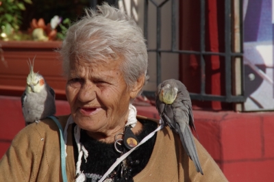 testowe Cypr.Portret kobiety z papugami. Parametry techniczne: Aparat: RICOH IMAGING COMPANY, LTD. ; Model: PENTAX K-S2 ; Przysłona: f/9,0; Czas ekspozycji: 1/3200 s; ISO: 800; Ogniskowa: 200 mm; © fot. Wojtek Sokolnicki data dodania: 11-03-2017