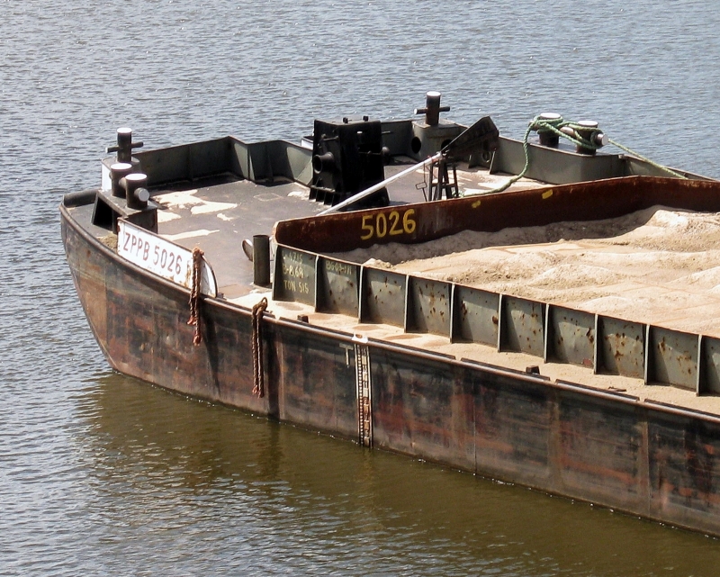 testowe Barka Barka z piaskiem wydobytym z dna Wisły w okolicach Białej Góry .Oczekuje ona na odholowanie. © fot. Piotr Hołubowiczdata dodania: 04-09-2009