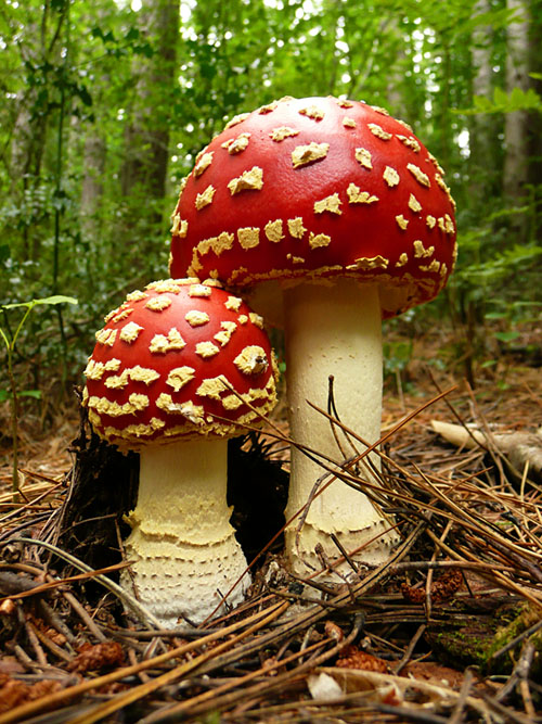 2 dorodne muchomory wypatrzone na trasie w okolicach Hammer Springs, Nowa Zelandia.