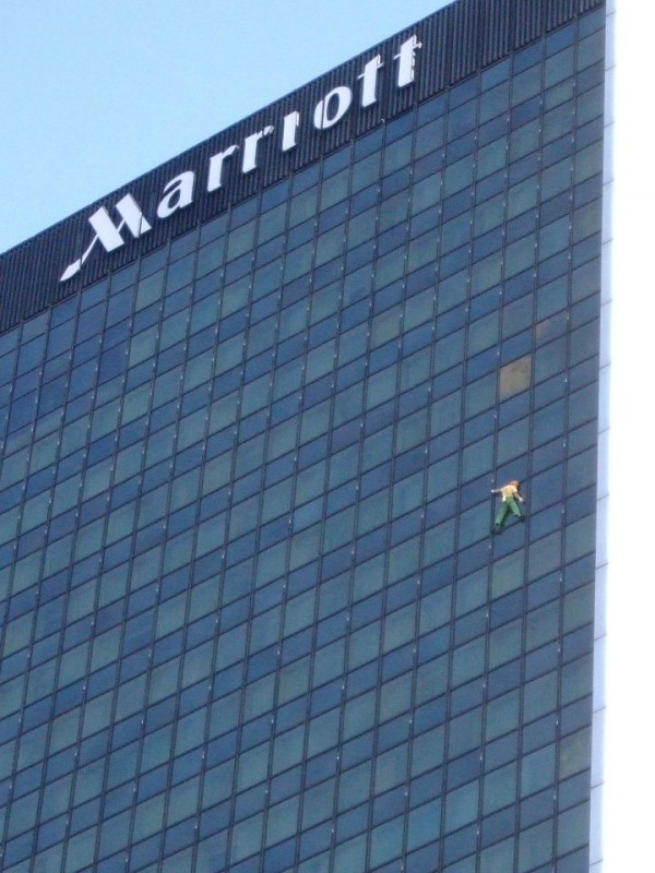 testowe Mariott Człowiek pająk na Mariocie. Tylko akcja Parametry techniczne: Kompakt Fujifilm F50, © fot. Krzysztof Powolny data dodania: 23-04-2009