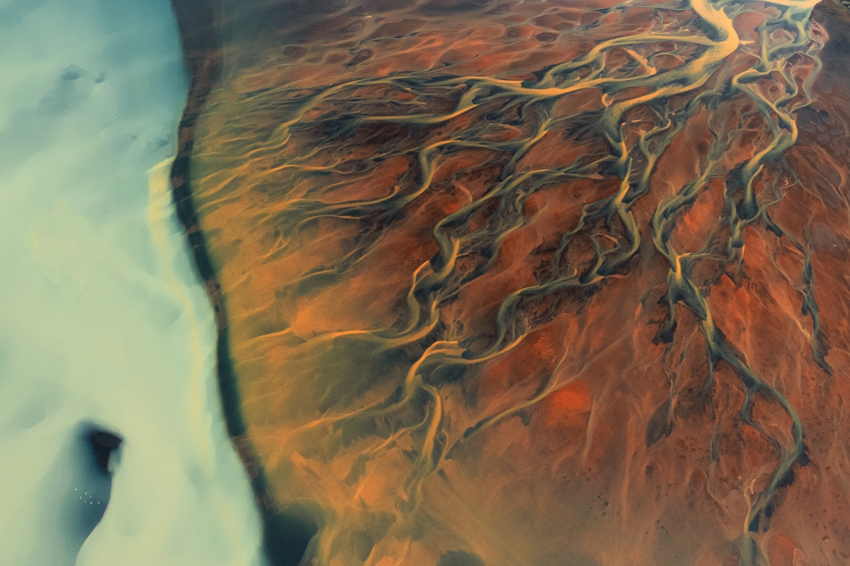 Islandzkie puzzle Ujecie z drona ,odplywy rzeczne z lodowcow znajujace ujscie w Oceanie. Parametry techniczne: Aparat: Canon; Model: Canon EOS R5; Przysłona: f/5,0; Czas ekspozycji: 1/250 s; ISO: 250; Ogniskowa: 16 mm; © fot. marek Biegalski data dodania: 06-11-2021