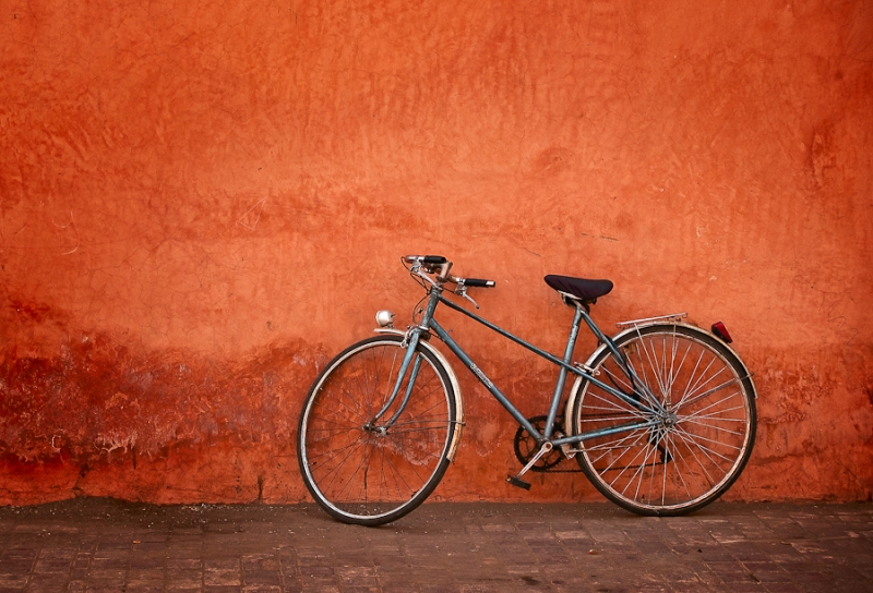 Ten rower zdawał się czekać na kogoś, spokojnie, na swoim miejscu, miał czas. W końcu ktoś przyjdzie, a jego koła znowu potoczą się ciasnymi uliczkami Marrakeszu.