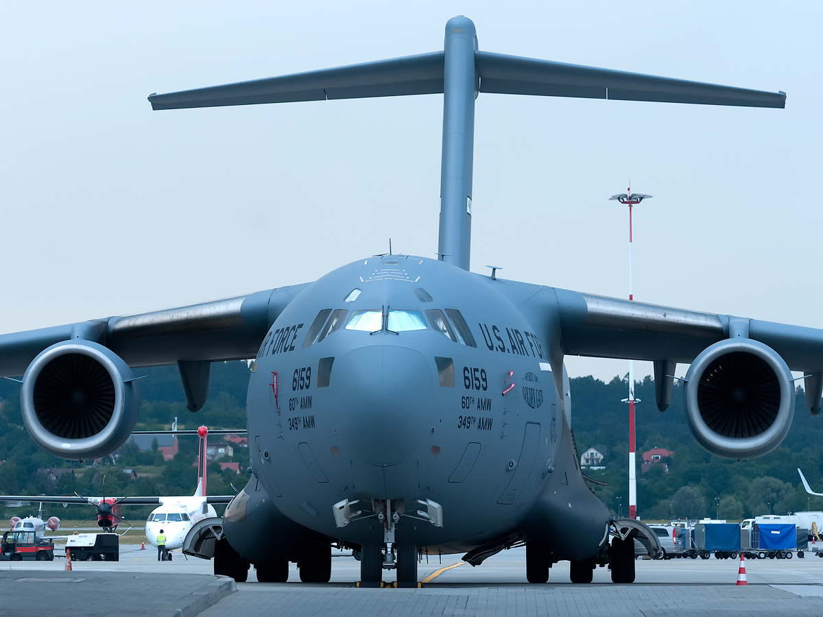 testowe Boeing C-17 Globemaster III Parametry techniczne: Aparat: NIKON CORPORATION; Model: NIKON D90; Przysłona: f/5,6; Czas ekspozycji: 1/125 s; ISO: 320; Ogniskowa: 112 mm; © fot. Artur Brandys data dodania: 10-07-2017