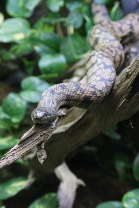Dobry kadr po skosie, rzutki tytuł. Ale trochę dużo ciemnych stref a ponadto ostrość uciekła zamiast na czubek nosa to na korpus węża.
