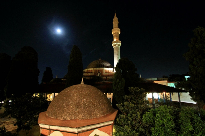 Rodos, miasto, minaret, meczet, Aparat: Canon; Model: Canon EOS 7D; Przysłona: f/4,0; Czas ekspozycji: 1/4 s; ISO: 3200; Ogniskowa: 10 mm;