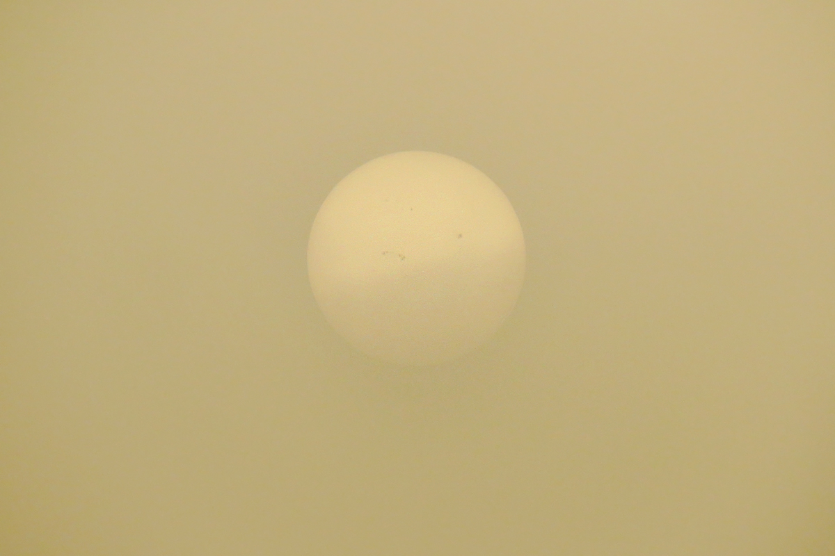 testowe Słońce we mgle 19.01.2025r. Mglisty zachód nad Jeziorem Lusowskim . Plamy na słońcu są wynikiem , że mgła podziałała jak filtr . Przekonał mnie o tym Pan Marek Lewandowski . Parametry techniczne: Aparat: Canon; Przysłona: f/6,3; Czas ekspozycji: 1/1600 s; ISO: 640; Ogniskowa: 151.3 mm; © fot. Bogna Jadżyn data dodania: 24-01-2025