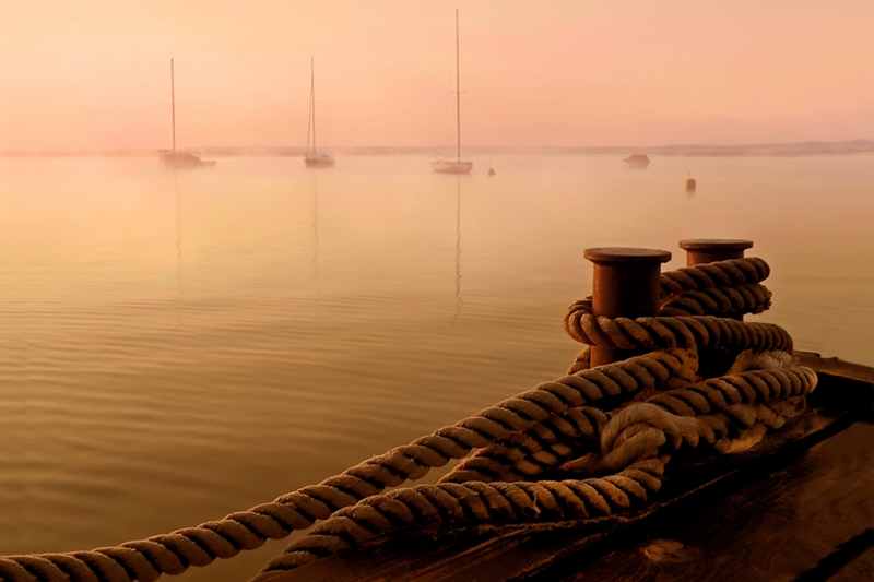 Poranek w sennej jeszcze nieco zatoce żeglarskiej.