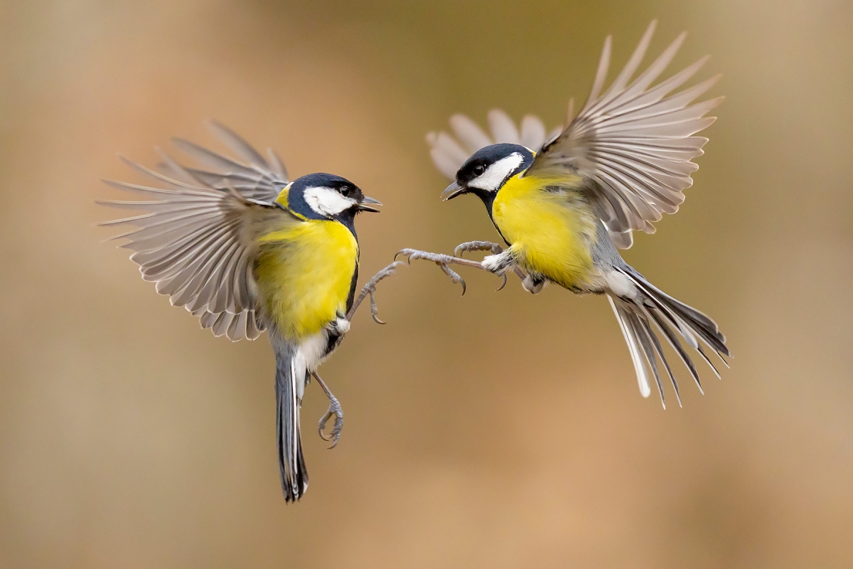 Znakomita scenka i perfekcyjna ostrość. Każdy kto próbował sfotografować kiedyś ptaka w locie (zwłaszcza tak małego i ruchliwego jak sikorka) wie, że to ujęcie to majstersztyk, pozdrowienia:)