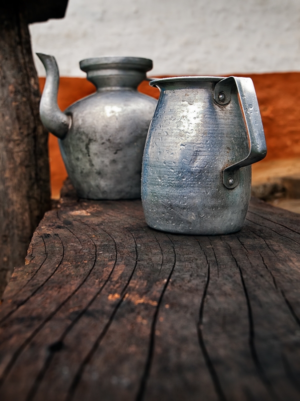 Naczynia użytku codziennego spotkane w trakcie trekingu w rejonie Kanchejungi.(Nepal)