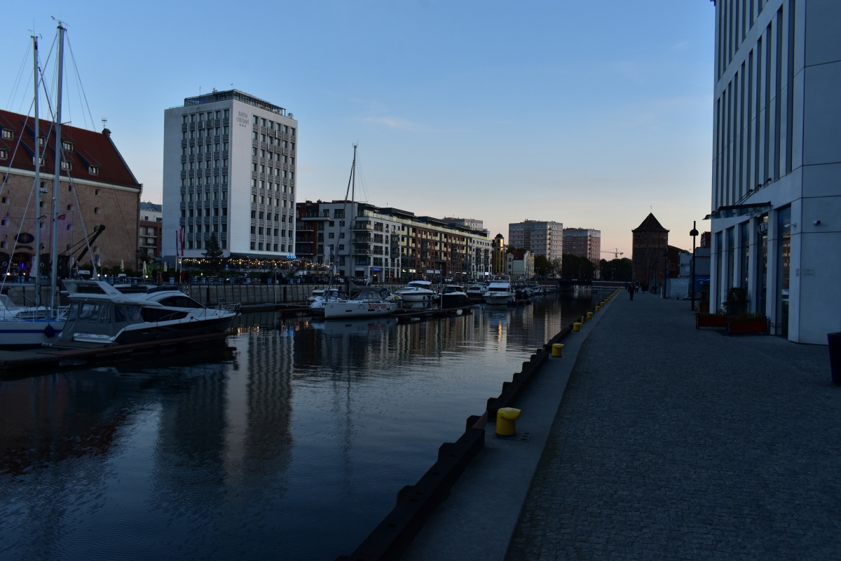 Ujęcie gdańskiej mariny na Nowej Motławie - widok z Wyspy Spichrzów