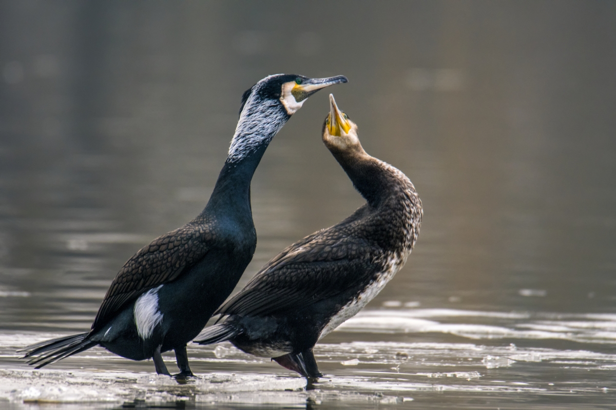 Miłość Na zamarzniętej odnodze Odry zebrało się spore stado kormoranów Te dwa ptaki powoli zbliżały się w moim kierunku płynąc na krze, a spojrzenie rzucone partnerowi od początku kojarzyło mi się z miłością Parametry techniczne: Nikon D500, Tamron 150-600 mm, 850 mm, 1/320 s, f/9, ISO 800 Aparat: NIKON CORPORATION; Model: NIKON D500; Przysłona: f/9,0; Czas ekspozycji: 1/320 s; ISO: 800; Ogniskowa: 850 mm; © fot. Artur Rydzewski data dodania: 12-02-2020