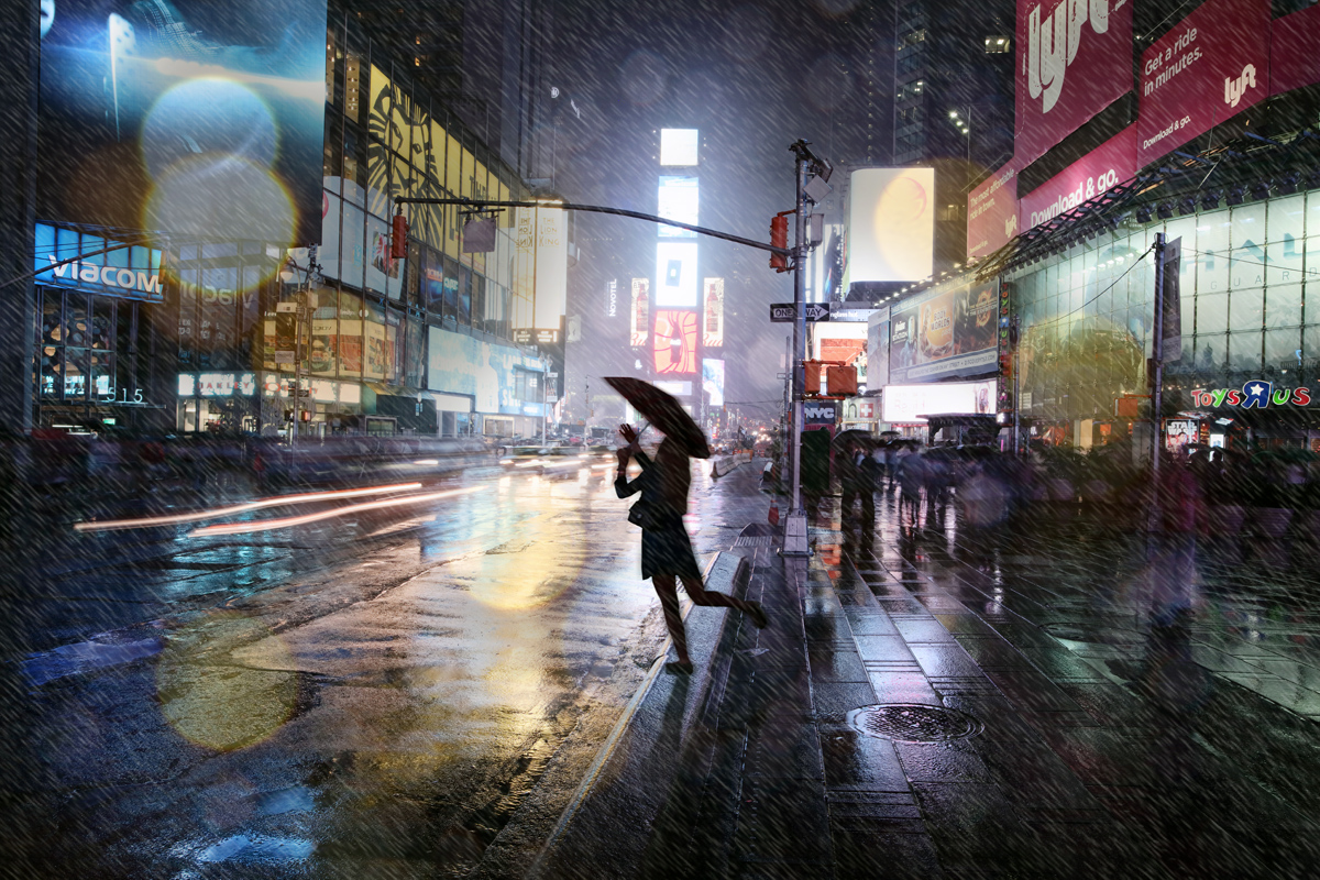 ulewa Jedna noc na Time Square i akurat mocno padał deszcz. Parasol, płaszcz przeciwdeszczowy, plastikowe torby i statyw. Trudne do opanowania. Parametry techniczne: Aparat: Canon; Model: Canon EOS 5DS R; Przysłona: f/16,0; Czas ekspozycji: 1/0.6 s; ISO: 100; Ogniskowa: 24 mm; © fot. andrzej bochenski data dodania: 19-02-2024