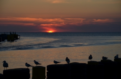 Myślę, że mewy i falochron graja tu pierwsze skrzypce, więc na nich ustawił bym ostrość traktując słońce jako tło. Dobrze by było zwiększyć trochę "dziurę" i wpuścić więcej światła ( bo kadr jest MZ. za ciemny )... Myślę, że robiłeś tę fotkę na "P". Ponad to jest już trochę ciemno, więc fajnie użyć statywu. (ja go nie trawię i wszystko robię "z ręki") Pozdrawiam - amator...