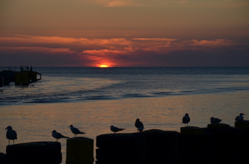 Zdjęcie wykonane latem podczas zachodu słońca w okolicy Kołobrzeskiego wejścia do portu.