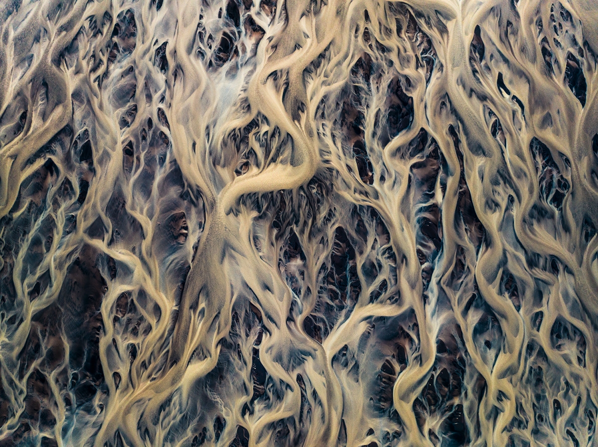 testowe Żyły Ziemii Zdjęcie przedstawia system rozległych rozgałęzień rzeki przepływającej przez południową Islandię, której źródła znajdują się w północno-zachodniej części lodowca Vatnajökull. Co roku rzeka doświadcza jökulhaups - gwałtownych powodzi glacjalnych, pochodzących z podlodowcowych kotłów Skaftárkatlar, które okresowo zalewają jej koryto. © fot. Jeremiasz Gadekdata dodania: 04-10-2024