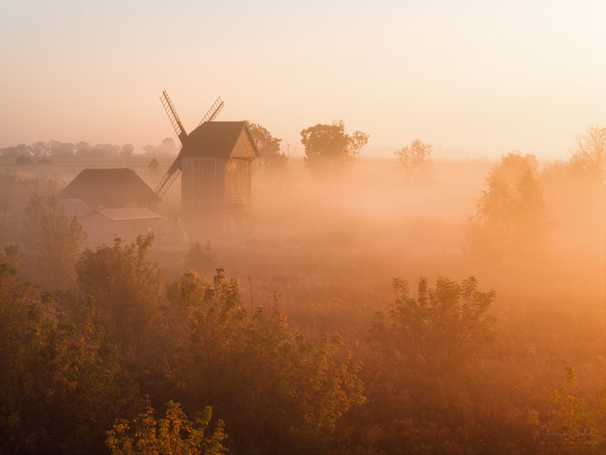 Każdy promień słońca przebijający się przez mgłę sprawiał, że miejsce nabierało zupełnie nowego wymiaru, jakby przyroda i historia splatały się w jedną opowieść. Nie było w tym momencie pośpiechu, wszystko toczyło się swoim naturalnym rytmem, a każdy detal przypominał o minionych czasach. To, co widziałem przed sobą, było obrazem harmonii - cisza, spokój i złociste światło, które jakby chciało opowiedzieć historię tego miejsca.