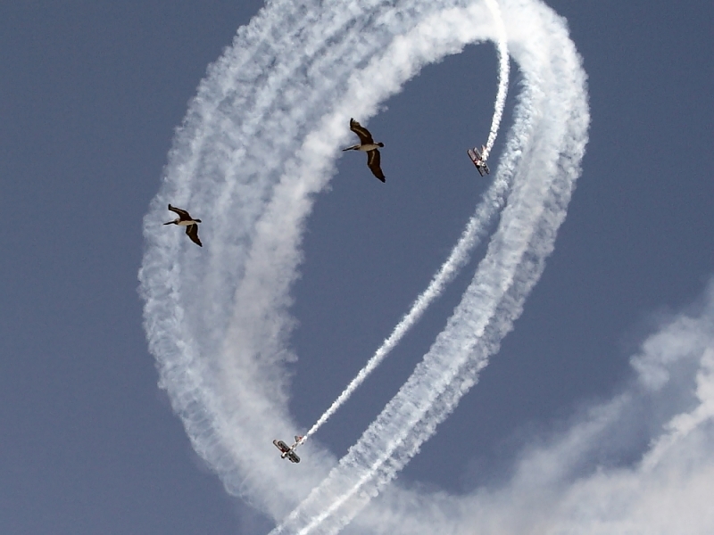 testowe dwie pary Zdjecie zostalo zrobione w czasie pokazow lotniczych ( 5/4/2003 ) ktore odbywaly sie nad oceanem wzdluz plazy w Fort Lauderdale na Florydzie (stad te pelikany). Parametry techniczne: Aparat: SONY; Model: CYBERSHOT; Przysłona: f/8,0; Czas ekspozycji: 1/500 s; ISO: 100; Ogniskowa: 16 mm; © fot. Marek Towpik data dodania: 22-09-2016