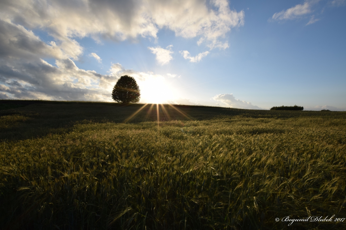 Zachód słońca w zbożu.