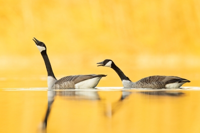 Czas uniesień Seria zdjęć składająca się z zalotów bernikli kanadyjskich i gęgaw, podczas złotej godziny Parametry techniczne: Canon R5, Canon 400mm f/2.8 IS USM, TC 1.4 III © fot. Robert Bogacz data dodania: 01-05-2023