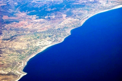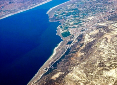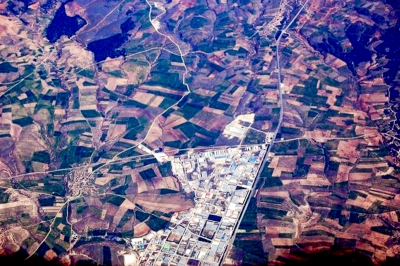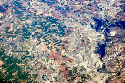 Widok z okna samolotu na pożyczonym sprzęcie