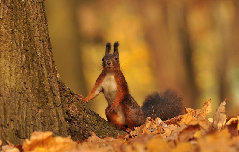 Mam identyczne skojarzenia jak Pan Marian! komentarz adekwatny do sytuacji i dowcipny. Gratuluję refleksu bo one są tak ruchliwe, że trudno złapać taką pozę.Czy fotografuje Pan w parku? Pytam, bo w parku one nie boją się ludzi. Pozdrawiam