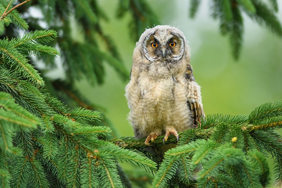 Młoda Uszatka, Long-eared Owl (Asio otus) ... 2018r