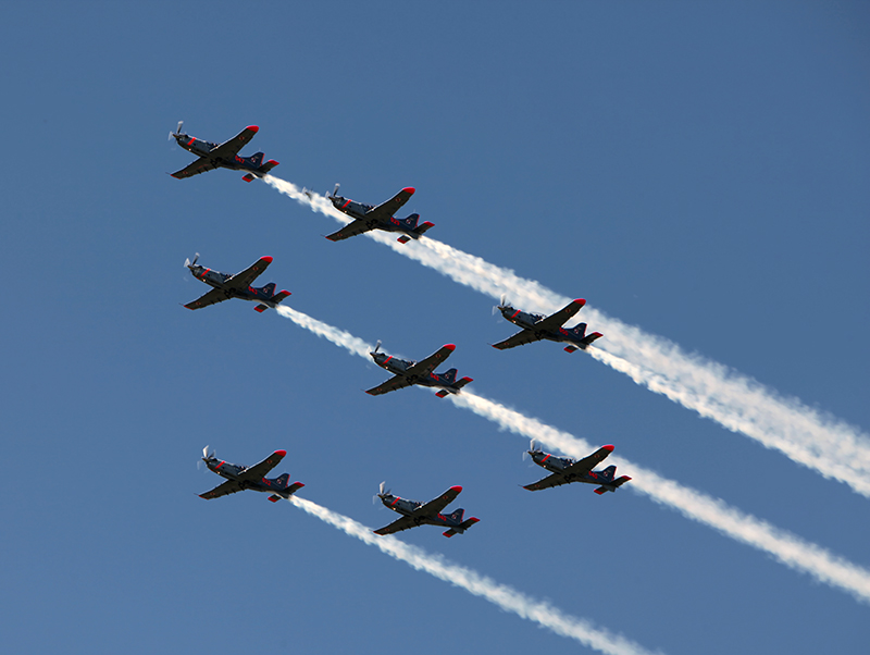 testowe Orliki 5 Nowotarski Piknik Lotniczy 18 sierpnia 2013 Parametry techniczne: Aparat: Canon; Model: Canon EOS 5D Mark II; Przysłona: f/9,0; Czas ekspozycji: 1/320 s; ISO: 100; Ogniskowa: 220 mm; © fot. Teresa Dziedziech data dodania: 06-09-2013