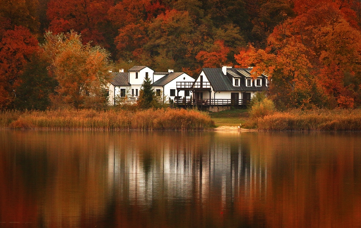 Jak tu pięknie, moja buzia uśmiecha się do tych jesiennych kolorów i białych domków