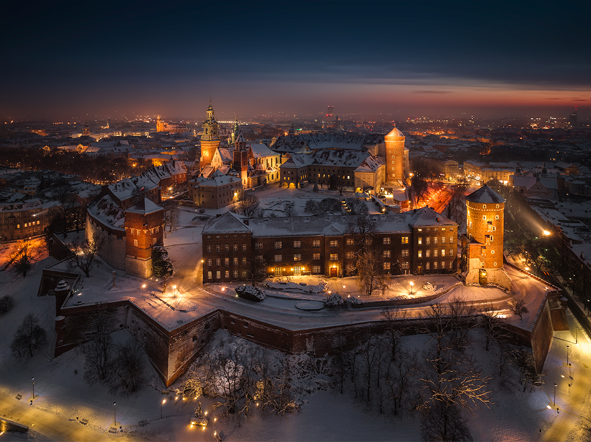Zimowy Kraków nocą Parametry techniczne: Aparat: Hasselblad; Model: L2D-20c; Przysłona: f/2,8; Czas ekspozycji: 1/1.3 s; ISO: 200; Ogniskowa: 12.3 mm; © fot. Jeremiasz Gadek data dodania: 14-12-2022