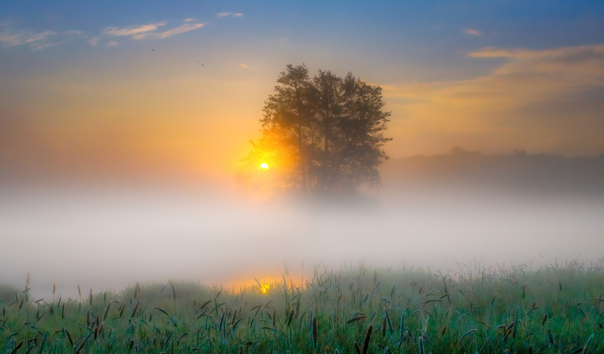 Mglisty wschód słońca nad rzeką Gwda (2)
