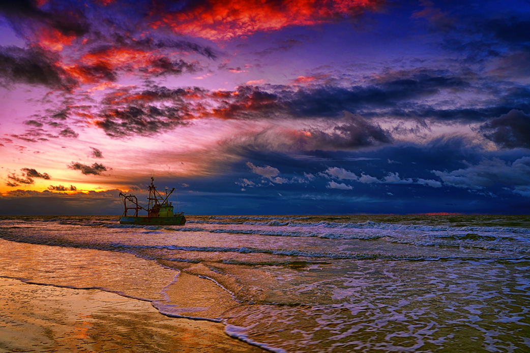 testowe Black Jack w kolorach zachodu słońca . Niderlandzki poławiacz krewetek utknął na plaży w Zandvoort Aan Zee podczas sztormu i miał problemy by powrócić z powrotem . Prawie dwa tygodnie firma starała się by wrócił do pracy. Byłem tam z kolegą od godziny drugiej po południu , zimno było przenikliwe , najpierw foty z długim czasem i filtrami , a pod koniec dnia już tak zmarzły mi ręce ,że nie umiałem już aparatu trzymać, więc ściągnąłem filtry i czekałem na zachód , a potem strzeliłem parę z ręki i taki efekt . Listopad 2023 . Parametry techniczne: . Aparat: SONY; Model: ILCE-7RM3; Przysłona: f/8,0; Czas ekspozycji: 1/20 s; ISO: 64; Ogniskowa: 24 mm; © fot. Wiesław Jucha data dodania: 14-12-2023